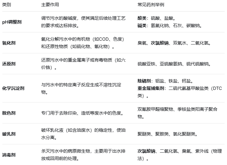 这类药剂通过与污染物发生化学反应,将其转化为无害或易分离的物质。