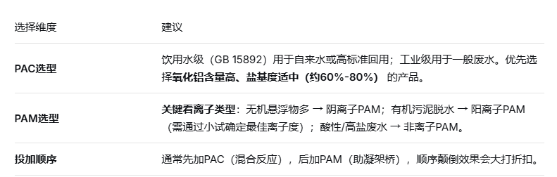 在明确目标和水质后,针对几类关键药剂进行具体选择: